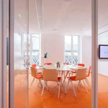 Situé au 1er étage, c’est un espace d’exception de 240 m² qui offre un cadre élégant et lumineux. Ses grandes fenêtres donnant sur le balcon filant, son parquet, sa proximité immédiate avec le puits de lumière de Renzo Piano et son cachet d’origine lui confère une atmosphère à la fois élégante et chaleureuse.